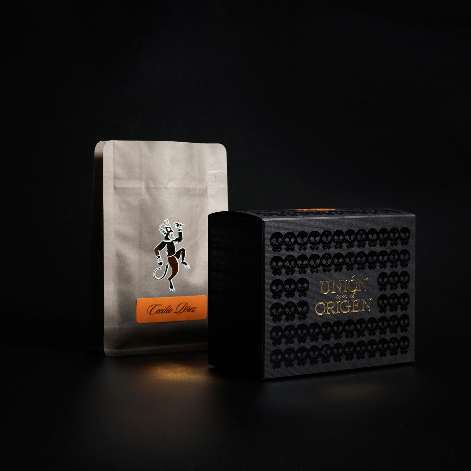 Este año, nuestra Edición Muertos rinde homenaje al tzompantli, símbolo mesoamericano de memoria colectiva y trascendencia. Reinterpretamos sus motivos en un lenguaje contemporáneo: un patrón de calaveras que recorre el empaque como un mural de recuerdos, acentos doratados que evocan la ofrenda y una paleta negro–cempasúchil que dialoga con la noche y la luz.